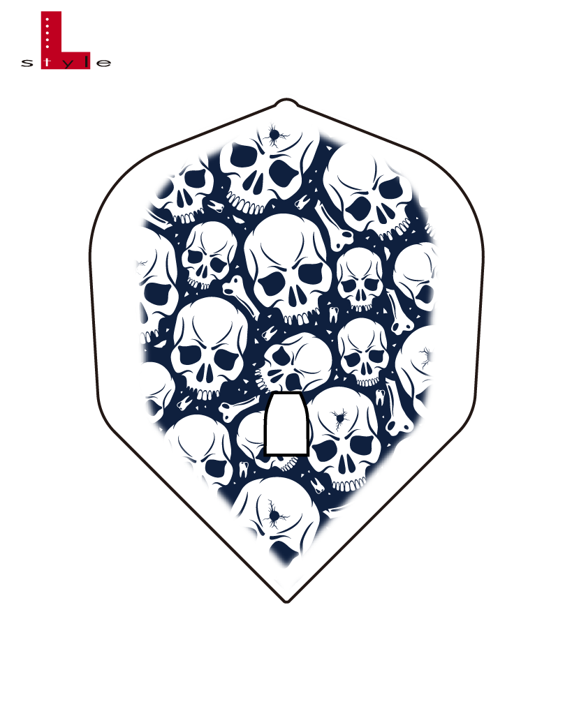 3年ぶりにD-CRAFTオリジナルデザインフライトに新デザインが登場! かっこいいスカルが沢山描かれたフライト『Many Skull』 数多のスカルの隙間にはある骨やフライトの透け感がより一層スカルの妖しい雰囲気を引き出しています。 何体のスカルがいるか、数える際には導かれないようご注意を… ※Lフライト・Fitフライト2種類の発売です。